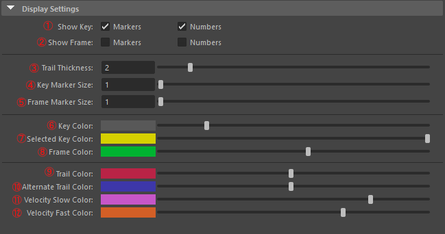 Motion Trail Editorは、大きく分けて「Settings」、「Edit Settings」、「Display Settings」の3つのセクションで構成されています。