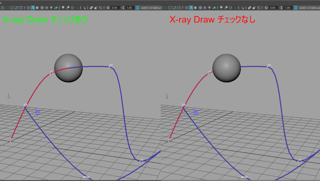 ・「X-Ray Draw」にチェックを入れている場合、オブジェクトと重なっても透かした状態で表示されます。