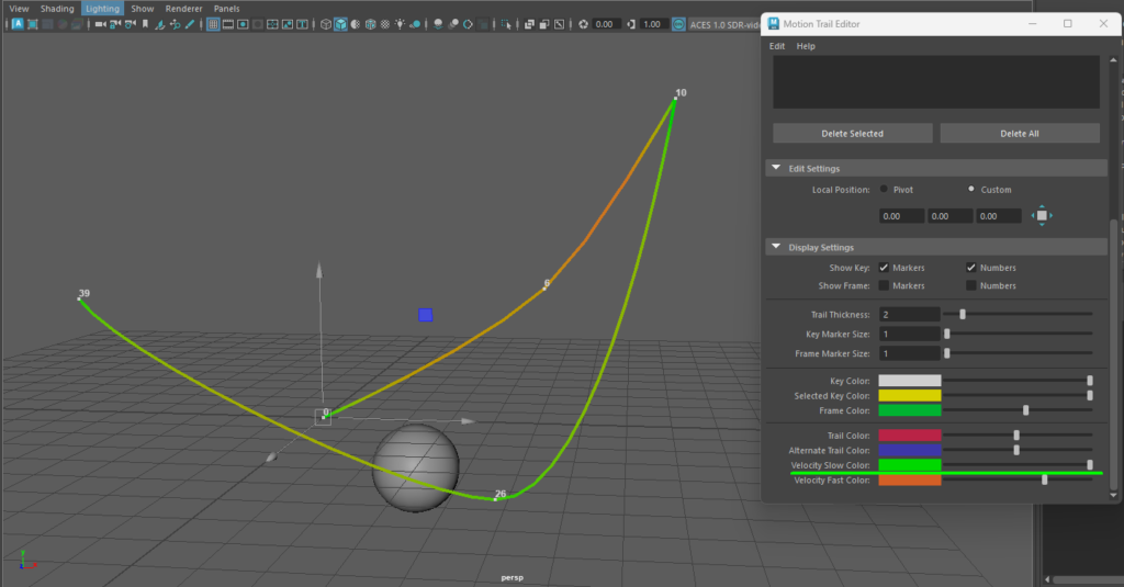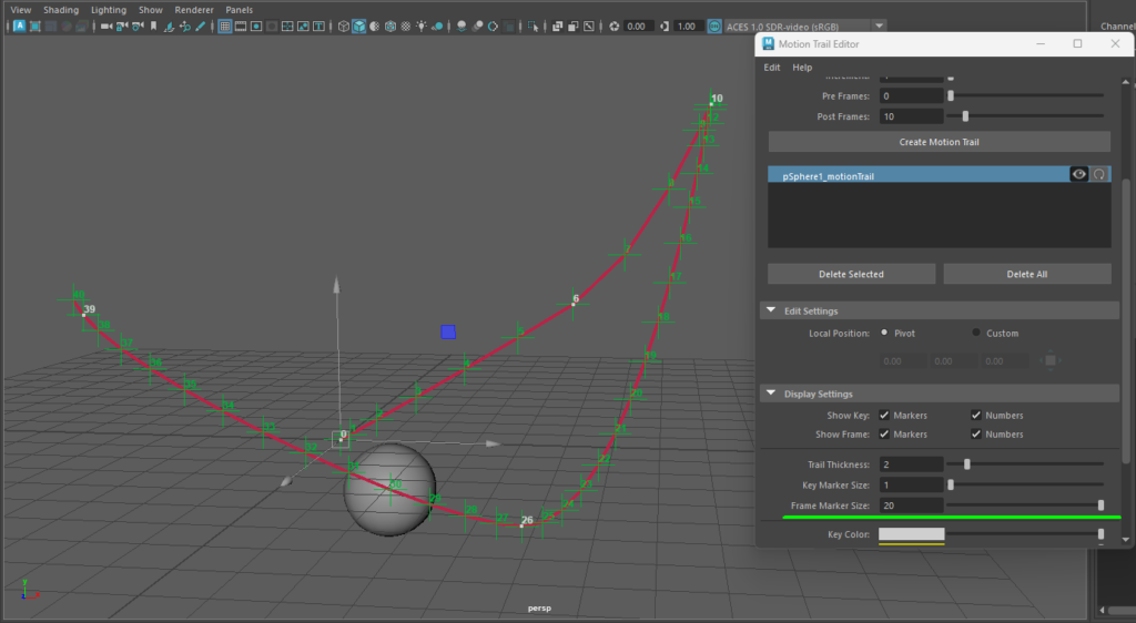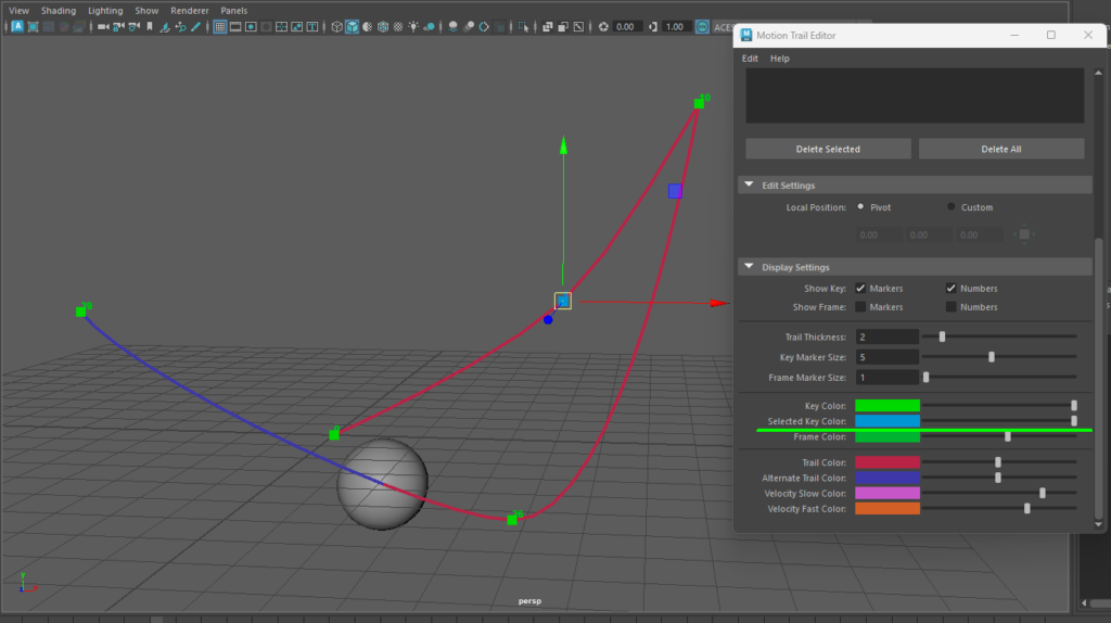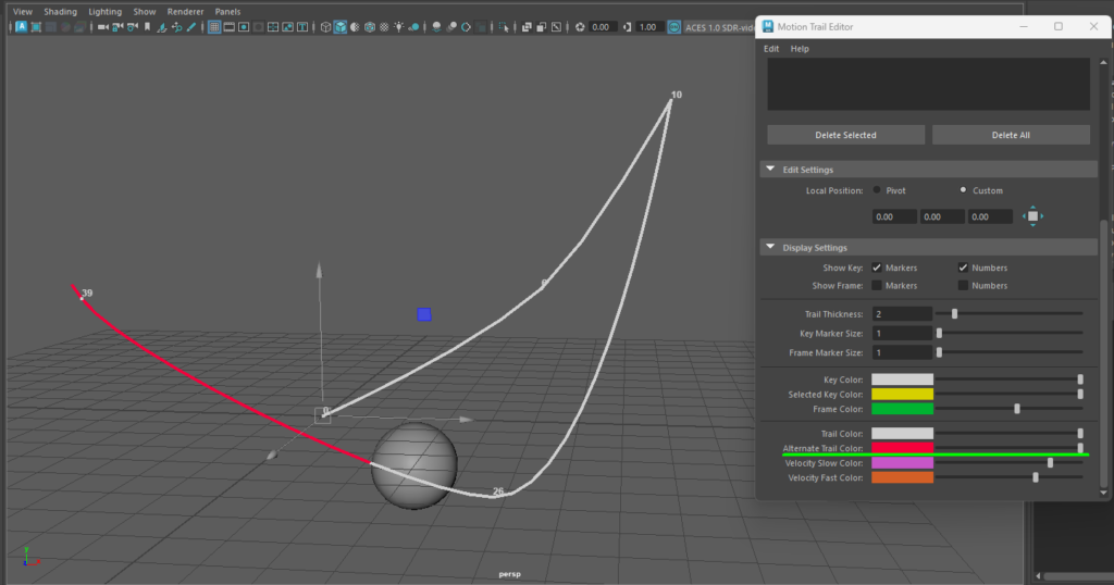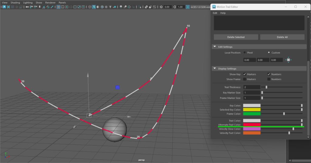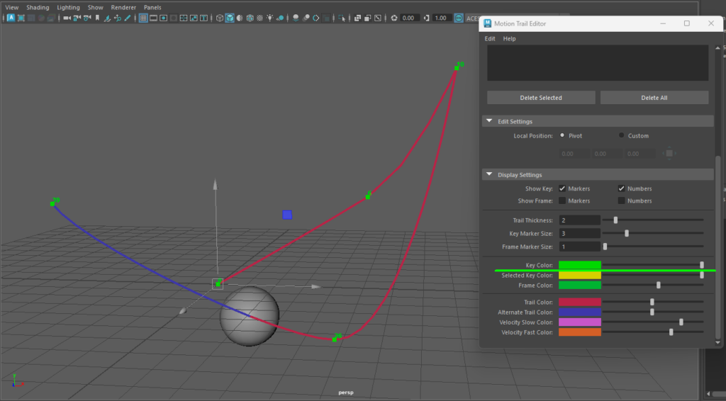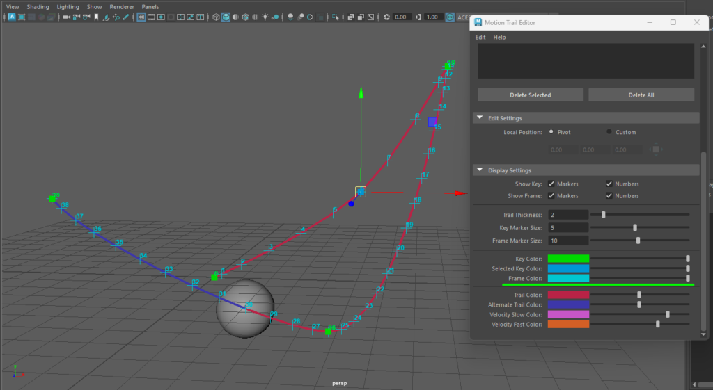 - 上部メニューから [Visualize] → [Create Editable Motion Trail] を選択