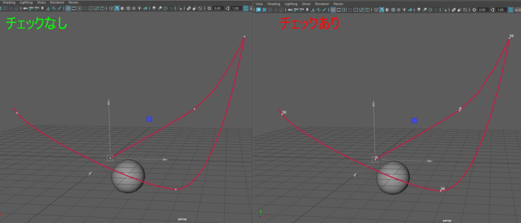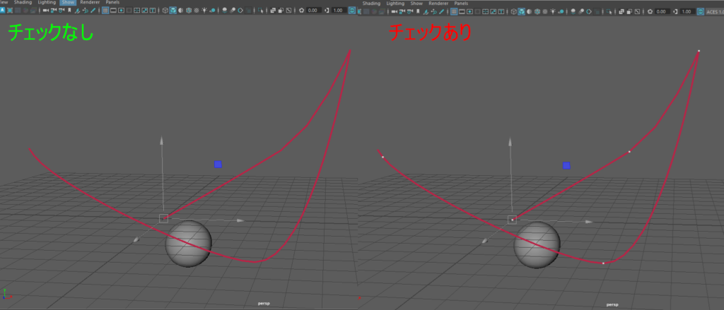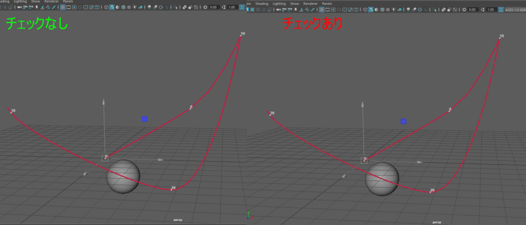 ・「Draws When Selected」を選択している場合、モーショントレイルを表示させているオブジェクトを選択したときにモーショントレイルが表示されます。